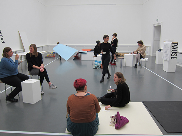 In addition, the break room served as a platform for discussion and exchange on the topic. In view of the widespread exploitation of relaxation techniques to increase productivity and the dictum of constant availability, the question emerges whether nowadays a break in fact still offers a space for freedom. Together with visitors, the break’s resistive potential was to be explored and tested.