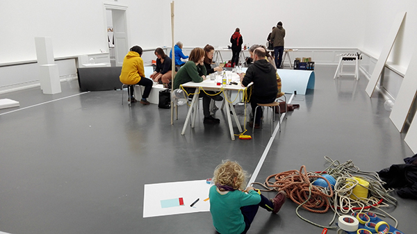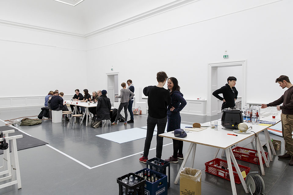 At the beginning of the anniversary year 2018, the Badischer Kunstverein remained closed for several months due to renovation work. fortda used this interruption of exhibition operations as an opportunity to “rearrange” a part of the institution and transform it into a public lunch room for two weeks. From 12 to 23 March 2018, the local public was invited to spend their lunch break at the Badischer Kunstverein, to eat, play or rest there, providing opportunities for encounters, exchanges and conviviality while also allowing for retreat and recreation.